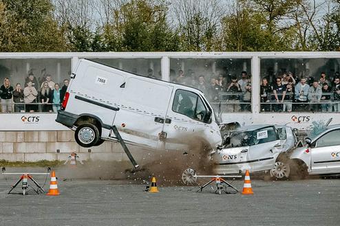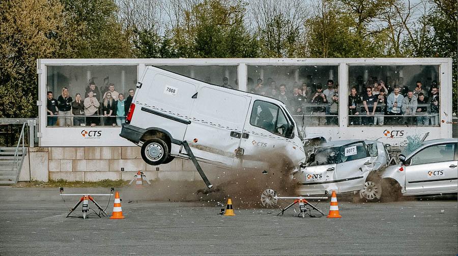 - Live-Kollisionen unterschiedlicher Fahrzeuge. Pkw, Lkw, Busse, Landmaschinen, Motorrad und Biofidel-Dummy