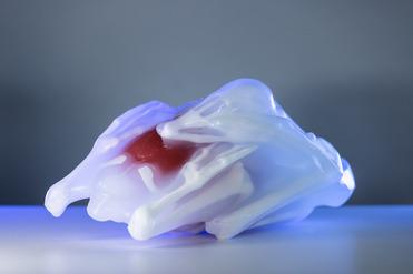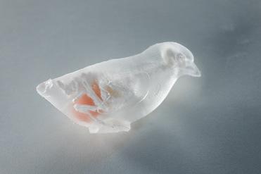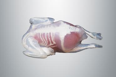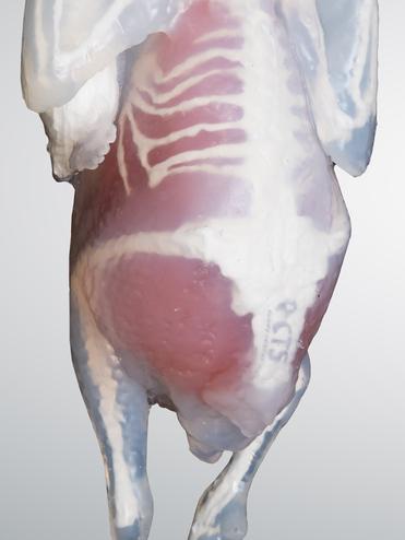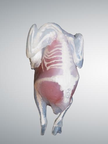 Die Knochen- und Gewebestruktur wurde aus einem CT-Scan eines durchschnittlichen Huhns und einer Gans und Taube abgeleitet. Die Gewebestrukturen mit ihren unterschiedlichen Eigenschaften bilden die äußere Hülle und die inneren Organe des Vogels nach.