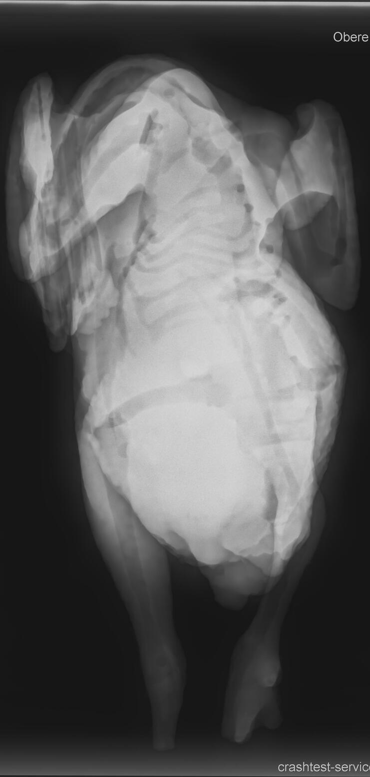 Bei dieser Gelegenheit wurden zwei bezeugte Tests mit 1,8 kg (4 lbs) Vögeln durchgeführt: CTS biofidel Kunstvogel unter identischen Aufprallbedingungen und der Kunstvogel DLRRAB des DLR.
