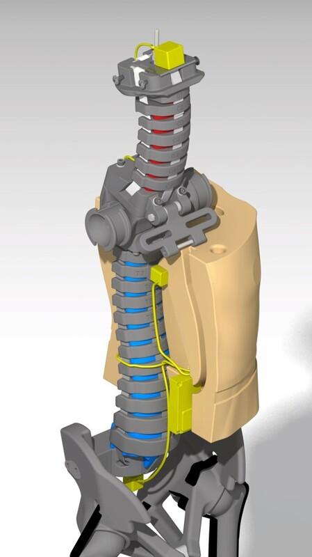 Um in Zukunft auch Belastungen der Wirbelsäule erfahrbar zu machen, haben wir den PRIMUS Dummy mit einer 6-Achs Kraftzelle von Kistler in der Lendenwirbelsäule ausgestattet, die Kräfte und Momente misst, die auf die Lendenwirbelsäule einwirken. So können Dauerbelastungen (Vibrationen, Schwingungen) gemessen werden. Aufgrund der naturgetreuen Nachbildung der PRIMUS Wirbelsäule können so insbesondere auch Belastungen bei "unnatürlichen" Körperhaltungen (verdrehter oder gebeugter Rücken) ermittelt werden.