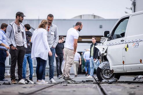 Ganz besonders, weil hier täglich Crashversuche stattfinden. Nahezu jeden Tag kracht es mitunter gewaltig – und Sie können live dabei sein. Zudem zeigen wir Ihnen gerne die Crashanlage und nehmen Sie mit in die Produktionshalle eines exklusiv bei CTS hergestellten Crashtest-Dummys.
