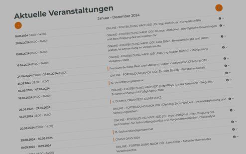 Neben etablierten Seminarreihen, wie dem Sachverständigen- und Polizeiseminar sowie der DUMMY.CRASHTEST.KONFERENZ, starten wir dieses Jahr mit ONLINE-Fortbildungen nach IDD-Punkten für Versicherungsangestellte. Dieses neue Format erweitert das vor Ort stattfindende Accidenta-Versicherungsseminar.