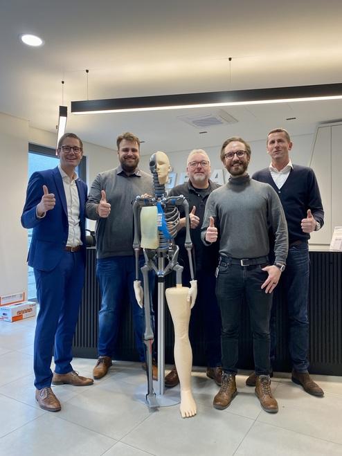 Neben der Abstimmung neuer spannender Projekte im Defence-Bereich, übergab CTS dem Team von EDAG einen Dummy zur Veranschaulichung des menschenähnlichen Aufbaus.