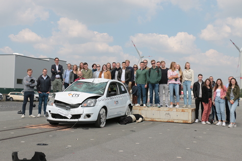 Neben einer spektakulären Auffahrkollision auf der Crashtestanlage, erläuterte Prof. Dr.-Ing. Lars Hannawald die Neuigkeiten zum Biofidel-Dummy im Dummylabor.