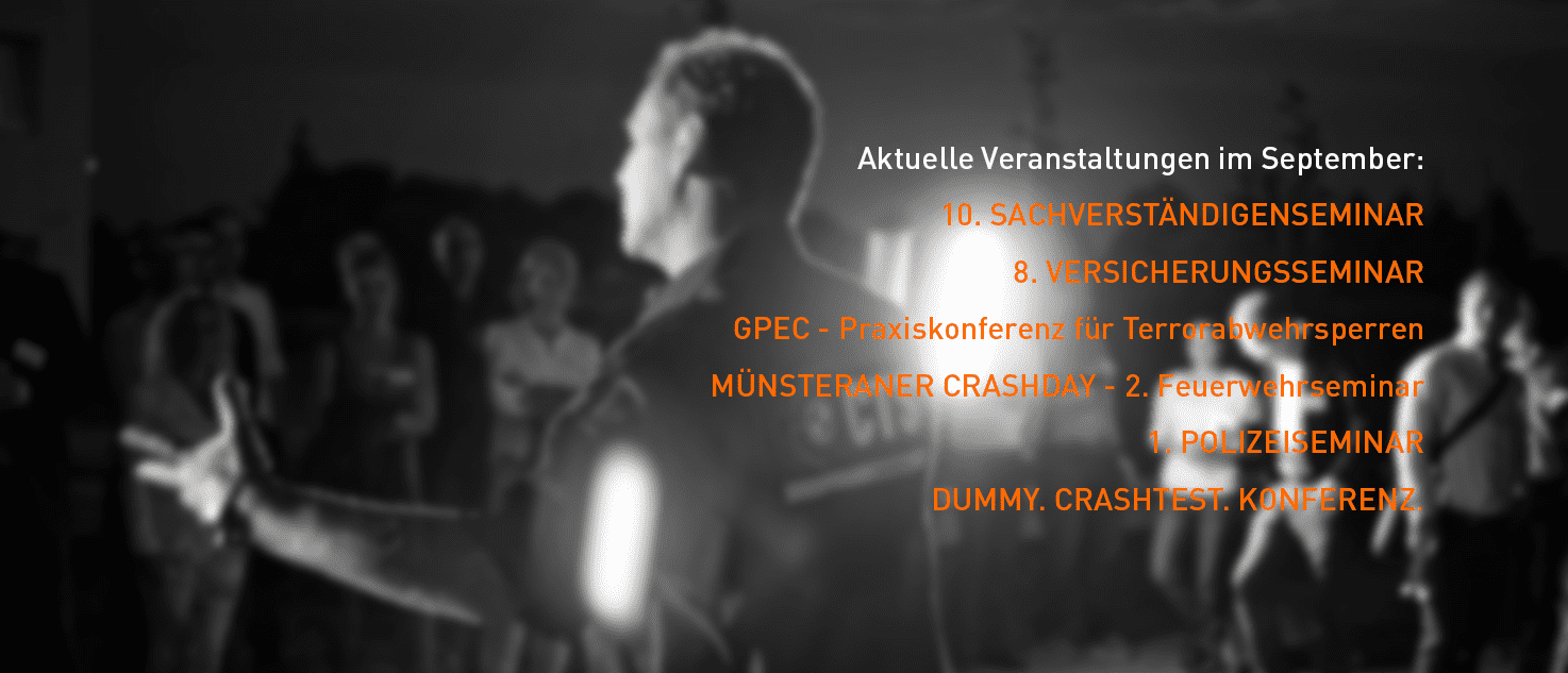 Für Kurzentschlossene: Es sind noch einige Plätze beim KFZ-Sachverständigenseminar, bei der Dummy. Crashtest. Konferenz. und beim Polizeiseminar verfügbar. Hier gehts zur Anmeldung.