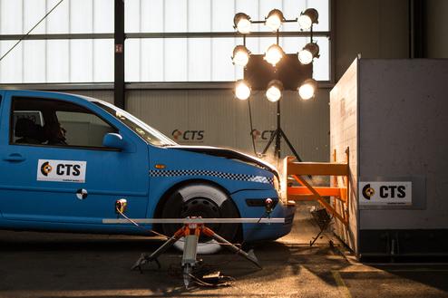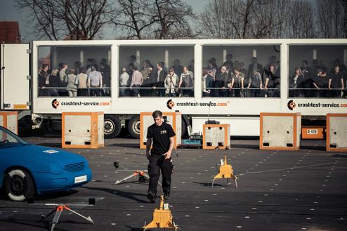 Aufgrund unserer geschützten mobilen Zuschauertribüne können Sie bei Ihren Crashtests live dabei sein.