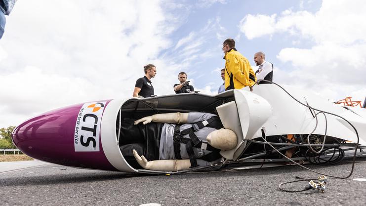 Built in 2011, our 40,000 m² facility now offers the opportunity to carry out extensive crash tests for accident reconstruction or to perform standard crash tests for vehicle restraint systems (for which we have been DAkkS accredited since 2013). Due to the area available to us, we are able to test all vehicle classes, whether passenger cars, motorcycles or heavy commercial vehicles (up to 70 tons) at speeds of up to 210 km/h.