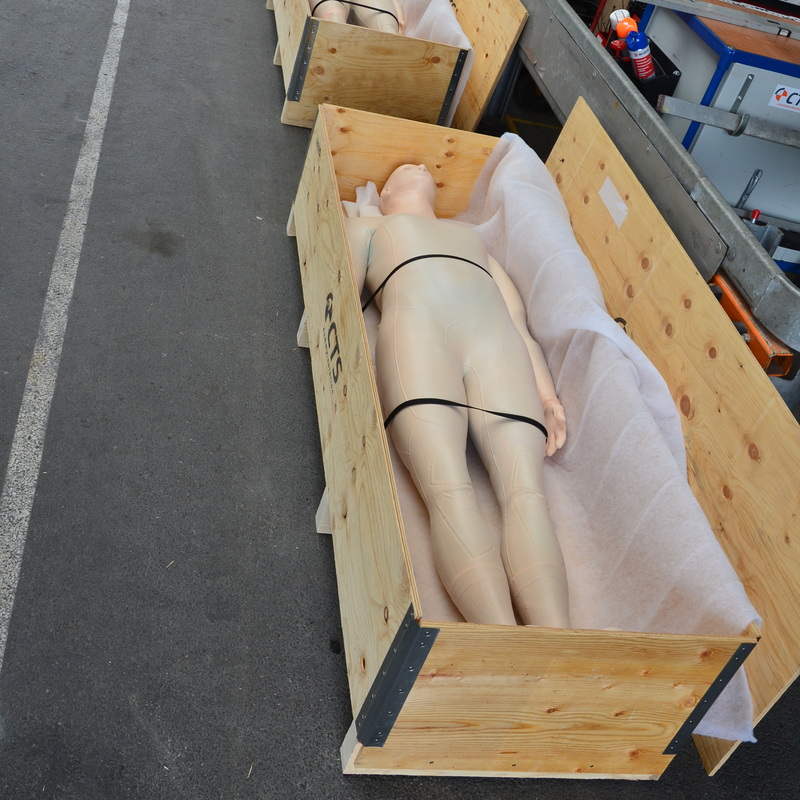 The packaging solutions customized in the dummy laboratory ensure smooth transport from Münster to destinations all over the world. With our specially secured transport boxes, we can ensure that dummies and dummy components reach their destination undamaged.