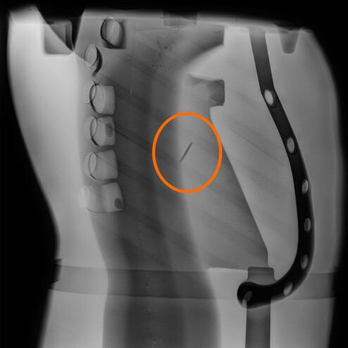 Shot channel in soft tissue of the dummy