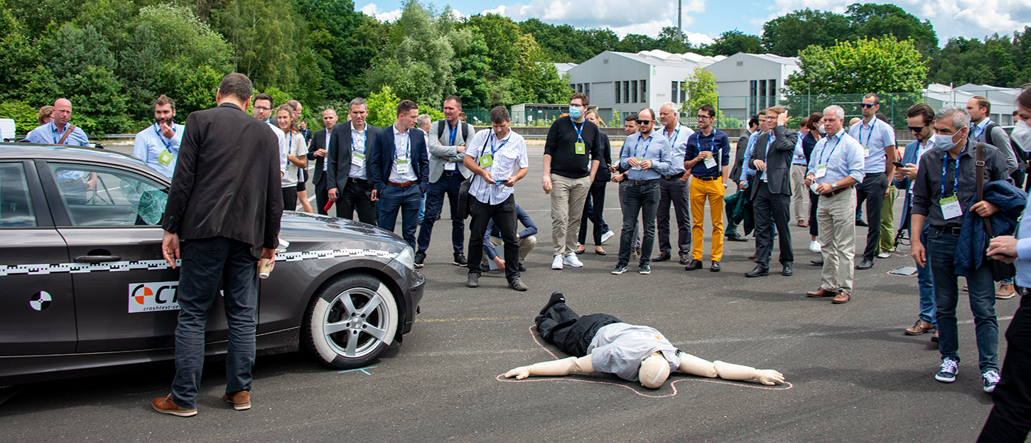 Experts from all over the world were represented online and on site at this year's "Practical Conference on Pedestrian Protection". The crash team from CTS was also present. Right on the first day of the event, a collision between a passenger car and a PRIMUS dummy on an e-scooter was simulated. The consequences of the accident for the PRIMUS dummy were then examined by Prof. Lars Hannawald during a live autopsy. In this way, the damage to the dummy could be visualised immediately for the audience. Dipl.-Ing. Benjamin Härtel also gave a presentation on the validation process of the PRIMUS dummy.