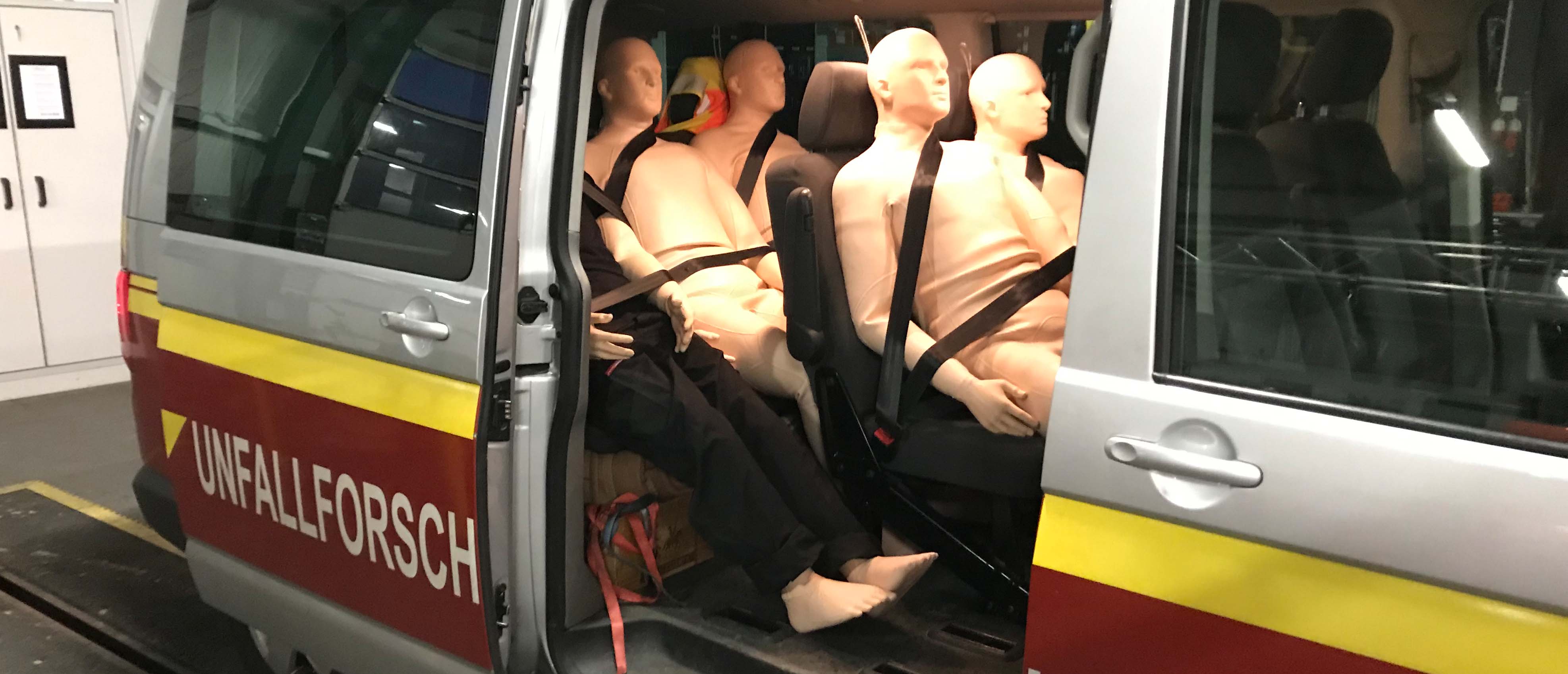 Once again, biofidelic dummies from the CTS-dummy manufacture leave the crash facility. This time around though sitting rather than lying down. Usually the biofidelic dummies are shipped in specially designed transportation boxes. This week, however, one customer decided to personally collect the dummies and brought them securely strapped in to their new destination.
