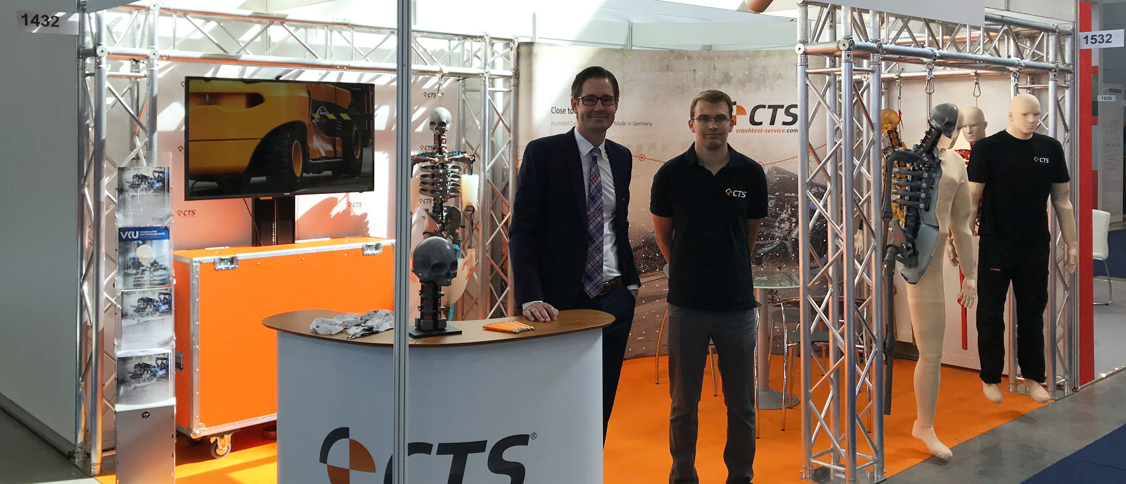 Automotive Testing Expo Europe 2018 is one of the leading exhibitions in the automotive industry. Over 400 exhibitors are currently represented at the exhibition centre in Stuttgart. Also present – of course – is CTS. Visit us at our stand ? 1432 in hall 10. There our experts are presenting the new Biofidelic Dummies. We have brought several fully functional dummies as well as dummy-skeletons from our dummy laboratory. Dipl.-Ing. P. Schimmelpfennig and technician K. Schulte are looking forward to your visit.